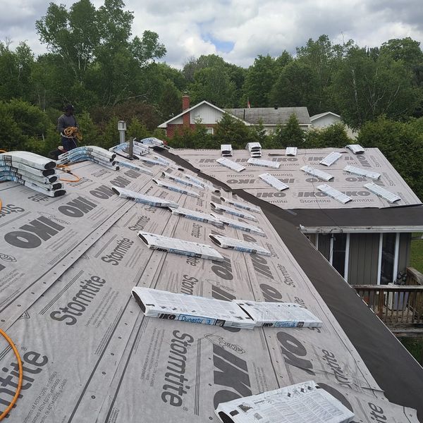 We are well equipped to handle all your roofing needs. No need to subcontract any parts of the job. We specialize in installation of Eavestroughs and Soffits. Cut out the middle-man and use our all inclusive service. We leave you with a finished product.